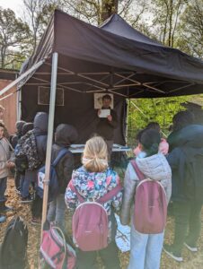 Ce jeudi 18 avril et vendredi 19 avril, quelque 500 élèves de primaires s’y sont donné rendez-vous pour y découvrir les métiers du bois et de la forêt. Au programme, une dizaine d’ateliers explicatifs : sur l’abattage, l’élagage, le sciage, le débardage mécanique ou avec des chevaux de trait, mais aussi la chasse, le rôle du DNF (Département Nature et Forêt) ou de la gestion forestière, et même des ateliers sur le loup en Belgique.